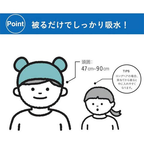 お子様の湯冷め予防や、プール終わりのタオルキャップにもおすすめです。