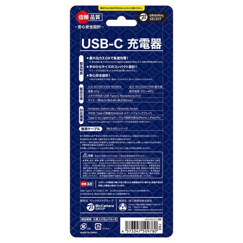 ORIGINALSELECT SwitchLite用 USB-C 充電器 グレー BKS-NSL011