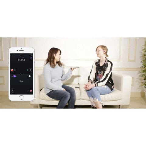 専用のアプリを起動し、左右のイヤホンを異なる言語を話す二人で分け合えば、翻訳された音声を聞きながら会話することが可能です。