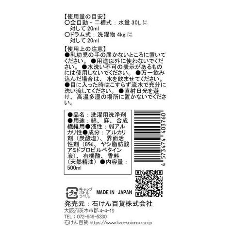 ヒャッカコレクション ナチュウォッシュリキッド洗濯洗剤500ml ラベンダーレモン