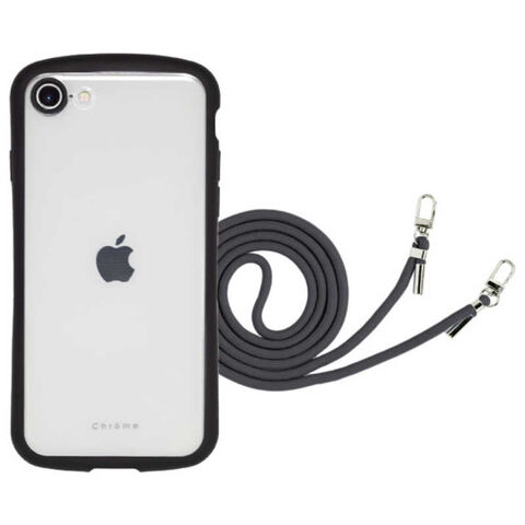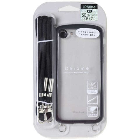 ナチュラルデザイン iPhone SE 第3世代/第2世代/8/7専用 透明クリア&シリコン塗装マットラバー加工 ショルダーストラップセット Chrome ブラック IP7CHCS02