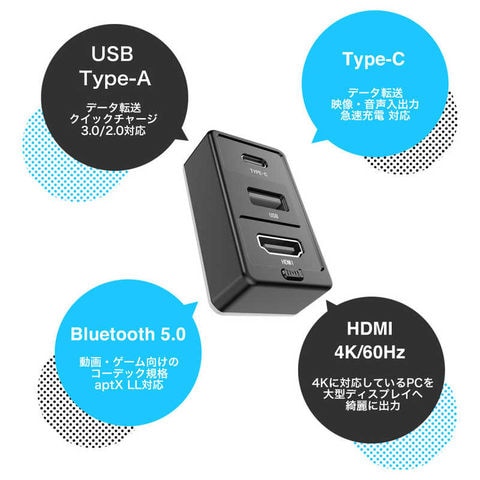 仕様1:端子:USB Type-C×1 / USB Type-A×1 / HDMI×1(4K 60Hz対応)