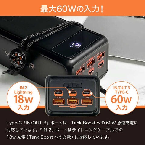 Type-C 『IN/OUT 3』ポートは、Tank Boostへの60W急速充電に対応しています。