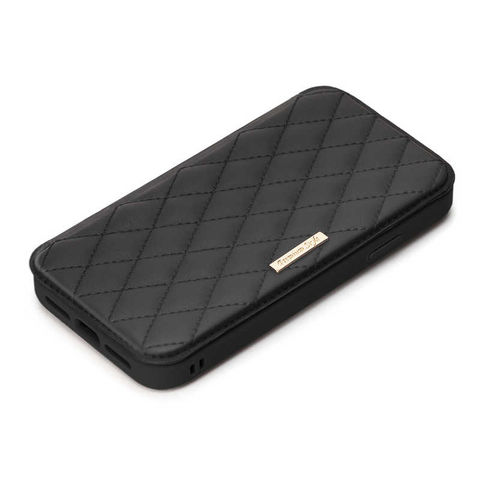 PGA iPhone 13 mini ガラスフリップケース Premium Style キルティング調ブラック [PG21JGF03BK] PG-21JGF03BK