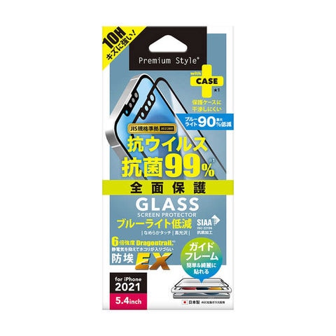 PGA iPhone2021 5.4inch 抗菌/抗ウイルス液晶全面保護ガラス ブルーライト低減/光沢 Premium Style [PG21JGLK02FBL] PG-21JGLK02FBL