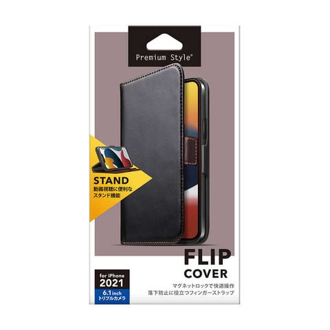 PGA iPhone2021 6.1inch 3眼 フリップカバー ブラック Premium Style [PG21NFP02BK] PG-21NFP02BK