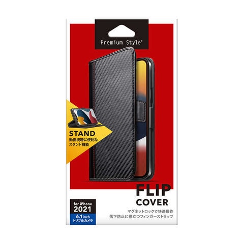 PGA iPhone2021 6.1inch 3眼 フリップカバー Premium Style カーボン調ブラック [PG21NFP08BK] PG-21NFP08BK