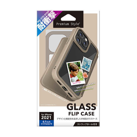 PGA iPhone2021 6.1inch 3眼 ガラスフリップケース Premium Style ベージュ [PG21NGF02BE] PG-21NGF02BE