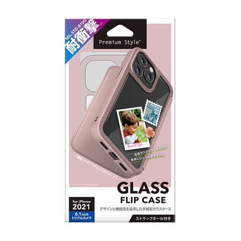PGA iPhone2021 6.1inch 3眼 ガラスフリップケース Premium Style ピンク [PG21NGF06PK] PG-21NGF06PK