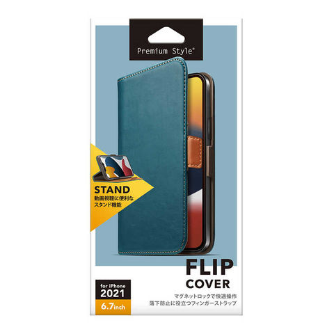 PGA iPhone 13 Pro Max 6.7インチ フリップカバー ブルー Premium Style PG-21PFP01BL