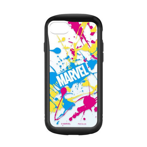 「MARVEL」デザインのiPhone本体の色を活かせるクリア仕様の2022年 iPhone 4.7inch用のガラスタフケースです。