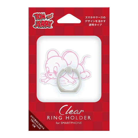 「トムとジェリー」デザインのスマートフォンやケースのデザインを活かすクリアタイプのスマートフォン用 リングホルダーです。