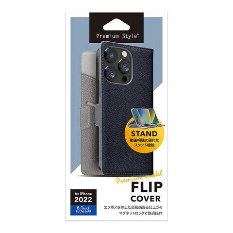 PGA iPhone 14 Pro 6.1インチ フリップカバー プレミアムモデル [ネイビー] Premium Style ネイビー [PG22QFP09NV] PG-22QFP09NV