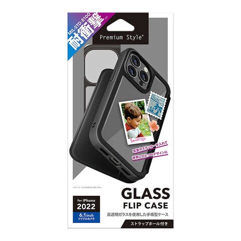 PGA iPhone 14 Pro 6.1インチ ガラスフリップケース [ブラック] Premium Style ブラック [PG22QGF01BK] PG-22QGF01BK