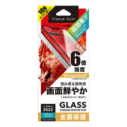 澄み渡る透明感を追求した2022年 iPhone 6.7inch デュアルカメラ用 液晶全面保護ガラスのスーパークリアタイプです。