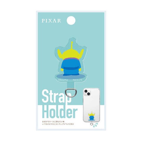ストラップホールのないケースに挟むだけでストラップが付けられる、ピクサーキャラクターデザインのダイカット ストラップホルダーです。