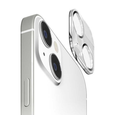 色鮮やかなカメラレンズのフチが特徴的なiPhone 15/15 Plus用のカメラフルプロテクター クリア/シルバーです。