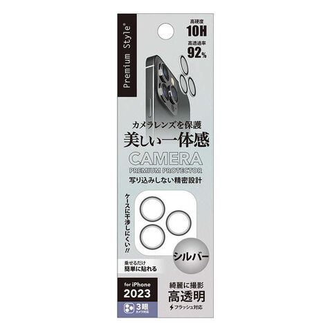 PGA iPhone 15 Pro(6.1インチ)カメラレンズプロテクター Premium Style シルバー PG-23BCLG24SV