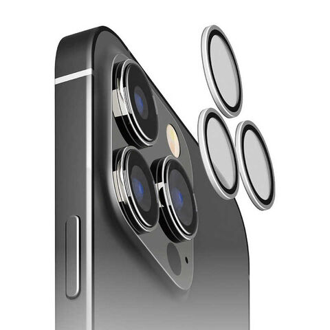 iPhone 15 Pro/15 Pro Max用のカメラレンズプロテクター シルバーです。