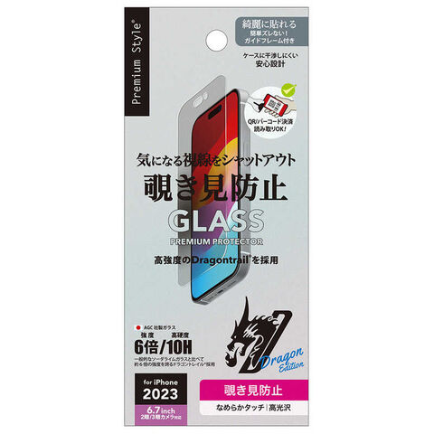 PGA iPhone 15 Plus(6.7インチ)/iPhone 15 Pro Max(6.7インチ) ガイドフレーム付 液晶保護ガラス [] Premium Style 覗き見防止 PG-23CGL05MB