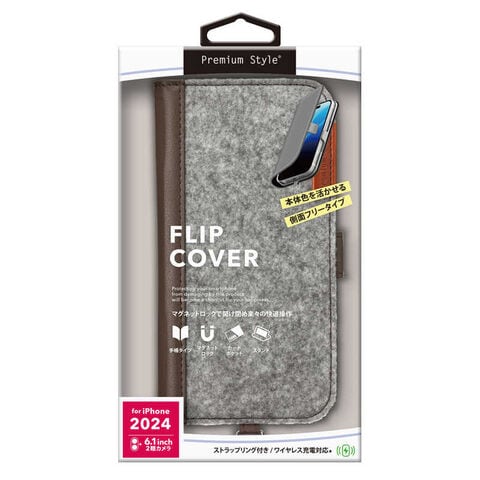 PGA iPhone 16(6.1インチ)フリップカバー Premium Style フェルト/グレー PG-24AFP08GY