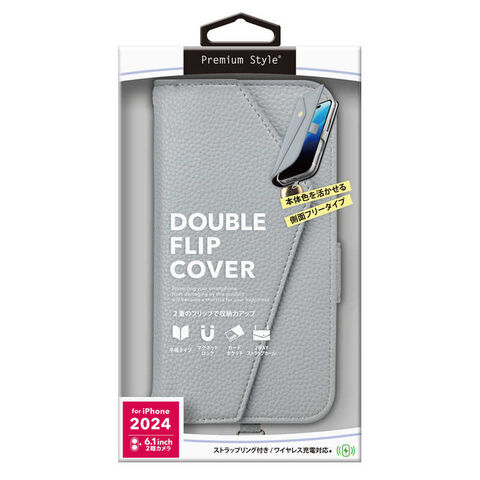 PGA iPhone 16(6.1インチ)ダブルフリップカバー Premium Style グレー PG-24AFP14GY