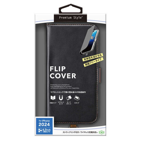 PGA iPhone 16 Pro(6.3インチ) フリップカバー Premium Style ブラック PG-24BFP02BK