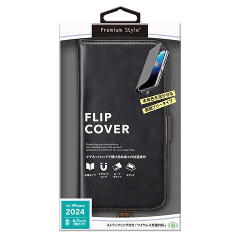 PGA iPhone 16 Plus(6.7インチ) フリップカバー Premium Style ブラック PG-24CFP02BK