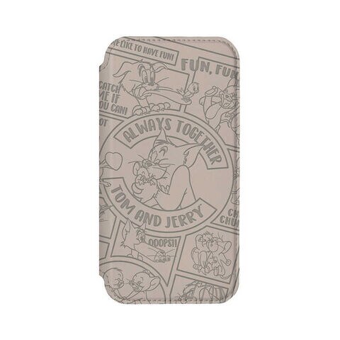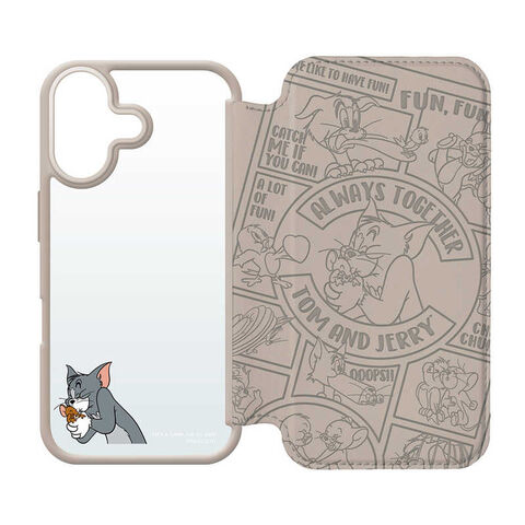 PGA iPhone 16用 ガラスフリップケース Premium Style トムとジェリー/ベージュ PG-W24AGF01TAJ