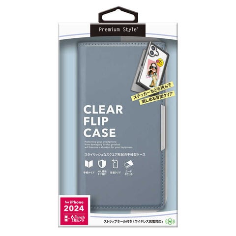 PGA iPhone 16(6.1インチ)クリアフリップケース Premium Style ブルー PG-24ACF09BL