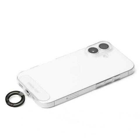 ストラップホールのないケースに挟むだけでストラップが付けられるカラビナリング付きストラップホルダーです。