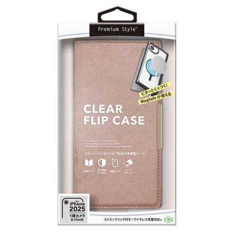 PGA iPhone 16e MagSafe対応 クリアフリップケース スエード調/ピンク Premium Style ピンク PG-25KMC03PK