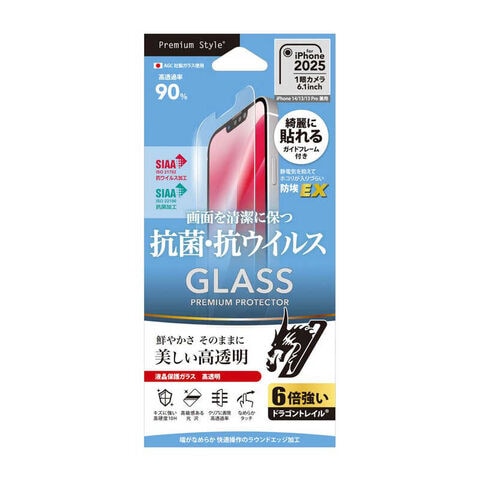 PGA iPhone 16e/ 14/ 13/ 13Pro 抗菌/抗ウイルス 液晶保護ガラス Dragontrail ドラゴントレイル Premium Style 高透明 PG25KGLK01CL
