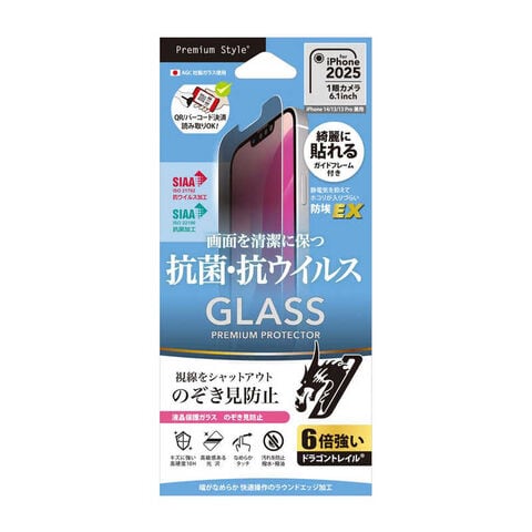PGA iPhone 16e/ 14/ 13/ 13Pro 抗菌/抗ウイルス 液晶保護ガラス Dragontrail ドラゴントレイル Premium Style のぞき見防止 PG25KGLK03MB
