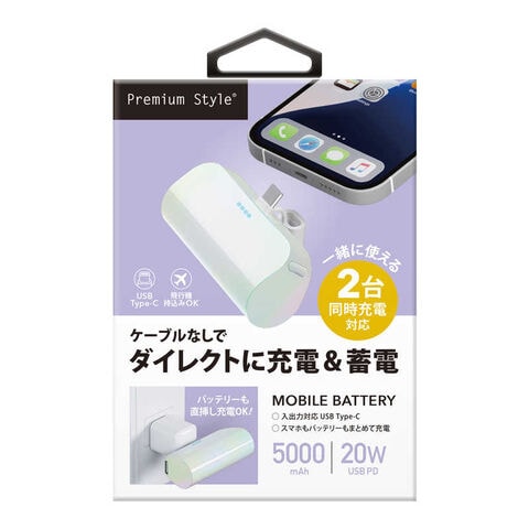 PGA Type-C 直挿しモバイルバッテリー 5000mAh PD20W Premium Style [USB Power Delivery対応 / 2ポート] オーロラ PG-LB50C03AR