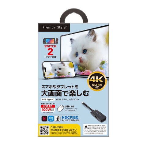 PD100W対応(PCへの出力は最大60W)※パソコンやスマートフォン、SWITCHをTVやモニターに接続する際は、本製品と別途HDMIケーブルが必要です。