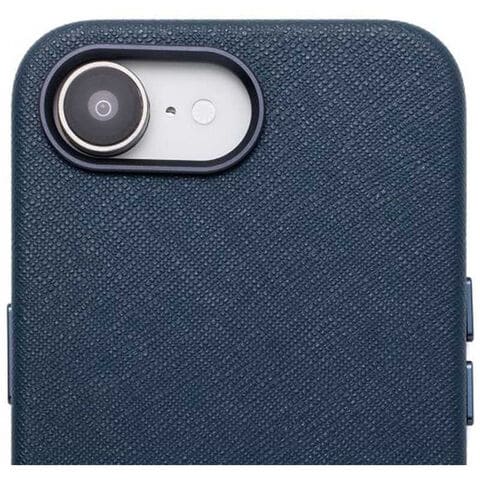 高級感のあるサフィアーノ調レザー。ケース内蔵マグネットにより市販のMagSafeアクセサリに対応(MagSafe充電は未対応)