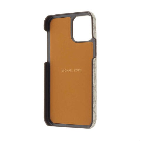 MKシグネチャーのロゴプリントキャンバスに、コントラストを効かせたストライプをあしらったデザインが特徴の背面タイプのスマホケースです。MagSafe対応。