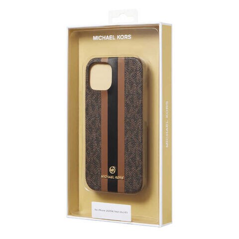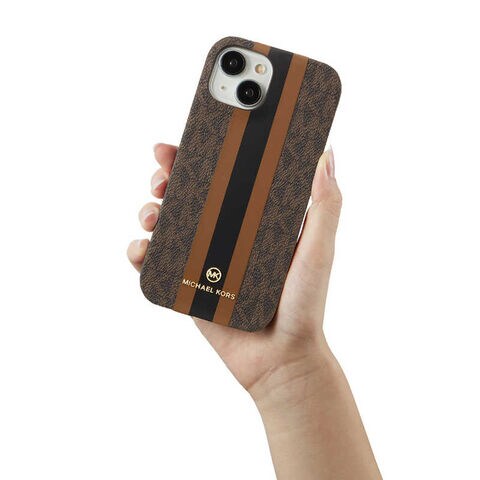 マイケルコース Slim Wrap Case Stripe MagSafe iPhone 15 MICHAEL KORS Brown MKSTBRWWPIP2361