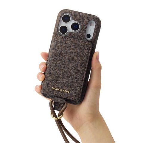 マイケルコース MICHAEL KORS - Wrap Case Magsafe Card Wallet with Strap for iPhone 17 Pro [ Brown ] MICHAEL KORS MKWSCWBRNPWIP2563P
