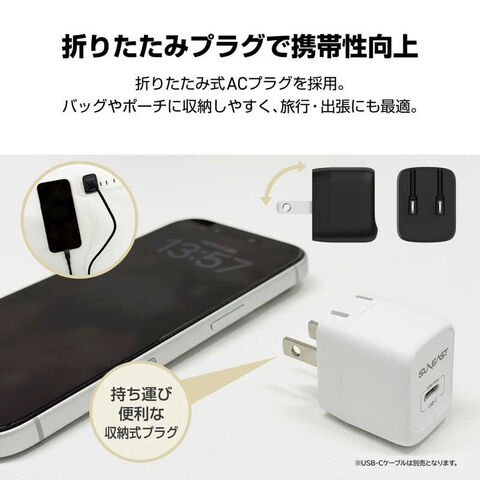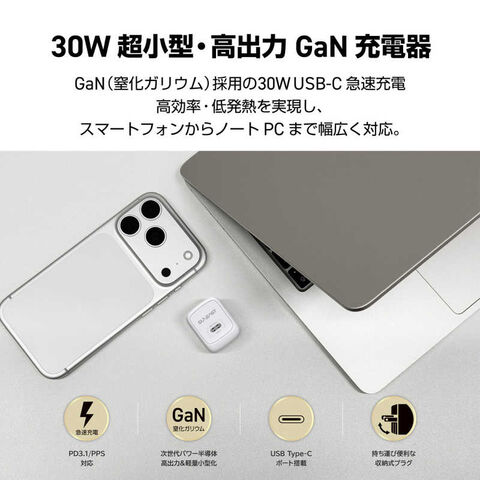 SUNEAST PD対応USB急速充電器 30w USB-C [1ポート / USB Power Delivery対応 / GaN(窒化ガリウム) 採用] ブラック SE-AC030BN002BKF