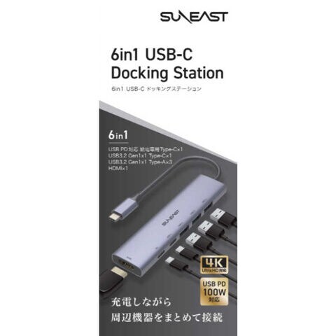 SUNEAST USB PD対応 ドッキングステーション USBハブ [バスパワー /6ポート /USB 3.2 Gen1対応 /USB Power Delivery対応] SEーDSRC61A2C1DP
