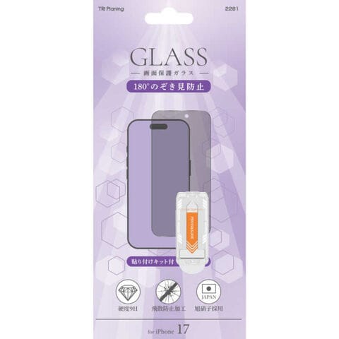 トライプランニング iPhone 17 ガラスフィルム 180°のぞき見防止 9H 貼り付けキット付 TRP-EG171P-PSR