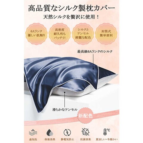 ユノキ 最上位ランク ( 6Aランク ) シルク 枕カバー ( 43×63cm ) ネイビー DMSLXY43