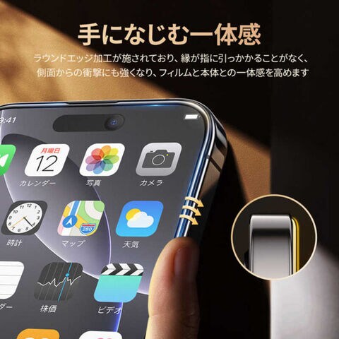 iPhoneの形状にピッタリとフィットするガイド枠に沿って、苦手な方でも確実にフィルムを貼り付けられます。貼付け前のクリーニングに便利なクロスやホコリ取りシールも付属しています。