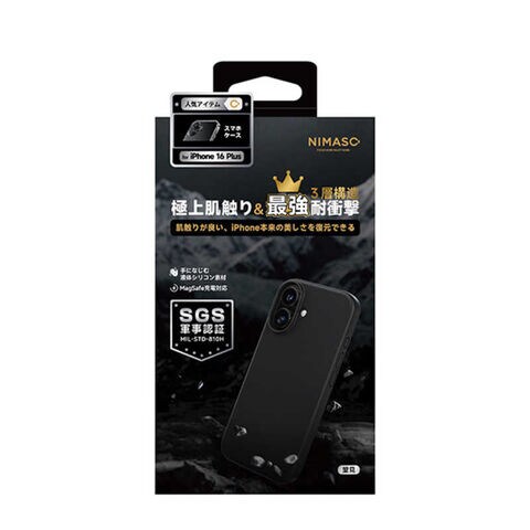 NIMASO iPhone 16 Plus Magsafe対応 3層構造耐衝撃ケース (ニマソ) ブラック NI-D1-16BS0604