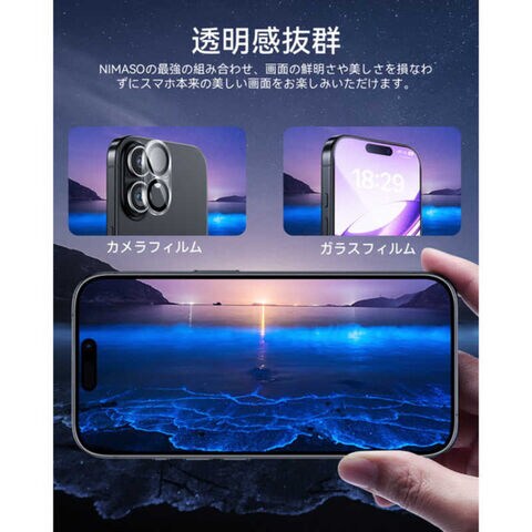 NIMASO iPhone 17 ガラスフィルム 高透明 レンズフィルムセット 簡単貼り付けガイド枠付 NIG117AK1S