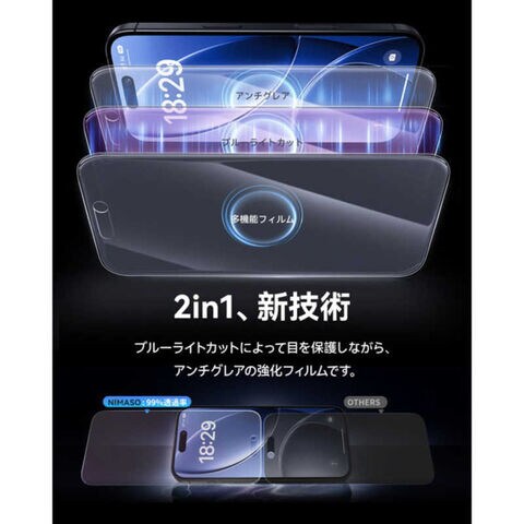 NIMASO iPhone17 Pro Maxフィルム ブルーライトカット35% バリ楽 NIG117DAGBL3