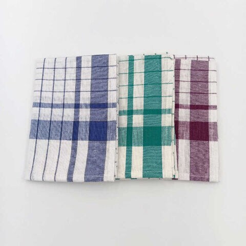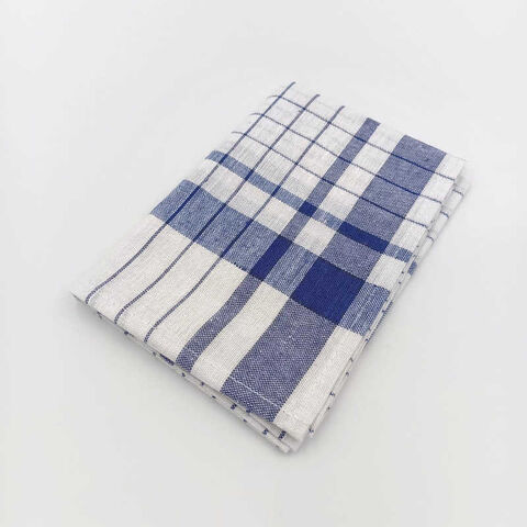 アベイチ プロが愛用するホテルクオリティの綿麻ふきん 格子柄 ブルー