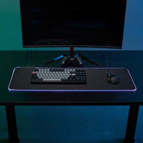 ●PCゲーミング用として作られた、光るデスクマットゲーム中の気分を盛り上げるイルミネーションが魅力的さまざまな光が作り出す空間で、臨場感のあるゲームを楽しめる
